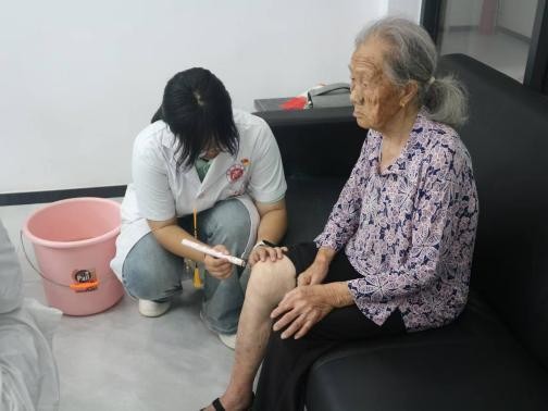 盛夏時節,草木蔥郁。寬石寨文明實踐站內臨時搭建了簡易的就診臺。實踐團成員們屏氣凝神,細心找準穴位,將點燃的艾條精準懸于鄉親們酸痛的頸肩、僵硬的腰膝之上。一位飽受膝蓋疼痛困擾的奶奶,在艾灸結束后反復屈伸膝蓋,笑容滿面地說道:“這股熱乎勁兒鉆進去,骨頭縫里都舒坦了!”實踐團成員們還耐心傳授簡易的保健灸法,把守護健康的“鑰匙”親手交給了鄉親們。