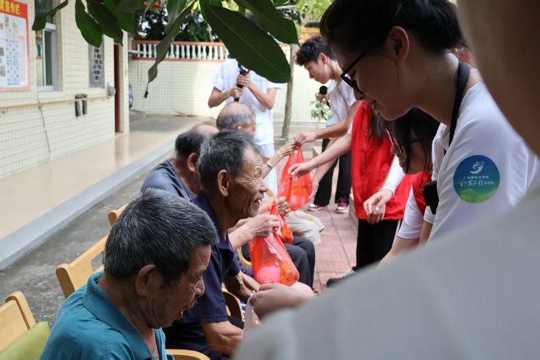 圖為粵農文創突擊隊給敬老院老人送水果。通訊員 張澤廣 攝