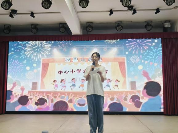 在文藝匯演活動開始的現場,山頭鎮黨委委員、組織委員劉慧上臺發表講話。她說在大學課堂中獲取知識,在鄉間校園里實踐運用,積極鼓勵合肥大學紅十字的隊員們,不忘初心、學以致用,鼓勵中心學校的孩子們認真學習、積極向上。為文藝匯演活動注入強有力的精神動力。