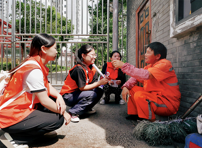 在指導(dǎo)老師的帶領(lǐng)下,團(tuán)隊(duì)前往合川區(qū)南津街街道中南社區(qū),通過“座談+走訪+宣傳”的三維立體調(diào)研模式,團(tuán)隊(duì)成員系統(tǒng)摸排社區(qū)人口結(jié)構(gòu)、年齡分布、基礎(chǔ)設(shè)施及服務(wù)需求。一張張調(diào)研問卷、一份份訪談?dòng)涗洠蠢粘錾鐓^(qū)發(fā)展的“三維圖譜”:老年群體占比28%的養(yǎng)老需求、兒童活動(dòng)空間不足的民生痛點(diǎn)、垃圾分類設(shè)施的優(yōu)化建議……這些一手資料為后續(xù)精準(zhǔn)服務(wù)奠定數(shù)據(jù)基礎(chǔ),為社區(qū)優(yōu)化治理提供了新思路。
