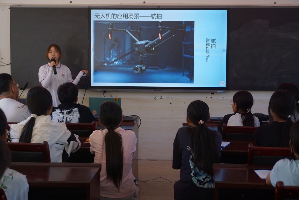 團隊成員化身“科技引路人”,以理論講解和實操演示,用通俗語言揭秘無人機原理。實操時,無人機的精彩飛行,引得學生驚嘆。袁春蘭老師和實踐團隊帶領同學們體驗模擬飛行,現場洋溢著濃厚的科技探索氛圍。