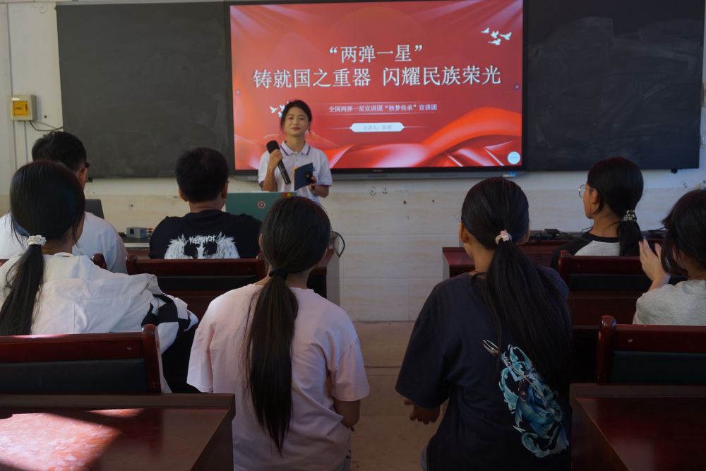 “兩彈一星”精神是國家寶貴財富。團隊通過故事分享與視頻展播,講述鄧稼先、錢學森等科學家隱姓埋名、攻堅克難的事跡。宣講現場,同學們深受觸動,在交流環節踴躍發言,誓言以先輩為榜樣,傳承“兩彈一星”精神,努力學習報國。