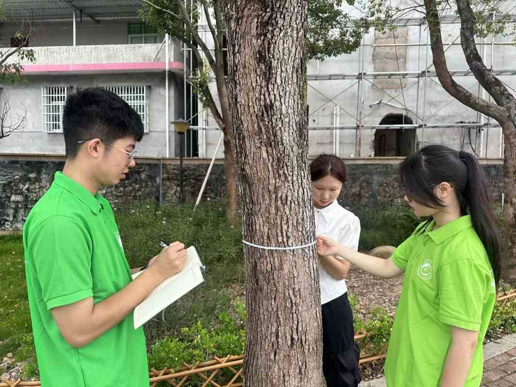 在南坑村等水土流失治理的典范區(qū)域,隊員們精準(zhǔn)開展樹木胸徑測量,細(xì)致調(diào)查葉片生長狀況,運用現(xiàn)代化技術(shù)手段監(jiān)測大面積人工林的健康狀況,為獲取樹木生長、生態(tài)系統(tǒng)恢復(fù)的一手?jǐn)?shù)據(jù)提供了支撐。同時,隊員們積極面向當(dāng)?shù)厝罕婇_展科普活動,發(fā)放生態(tài)保護(hù)宣傳資料,進(jìn)行問卷調(diào)查以了解人與自然和諧共生的現(xiàn)狀與需求。通過將專業(yè)調(diào)查與科普服務(wù)相結(jié)合,隊員們努力為長汀的樹木健康生長、森林生態(tài)系統(tǒng)功能提升提供數(shù)據(jù)參考和技術(shù)服務(wù),持續(xù)助力長汀水土流失治理成果的鞏固與深化,用實際行動厚植高質(zhì)量發(fā)展的生態(tài)底色。