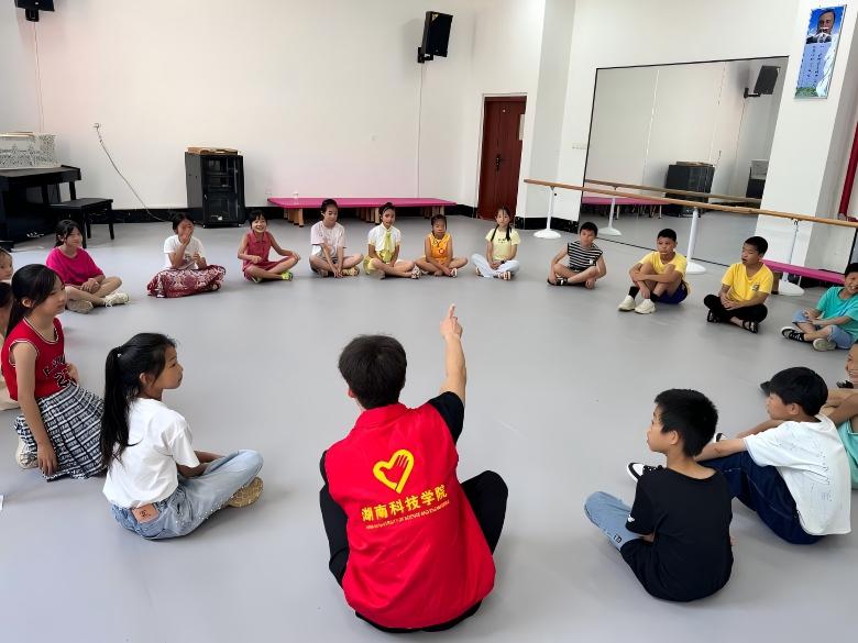 2025年7月3日, 湖南科技學院音樂與舞蹈學院“歌舞芳華”三下鄉服務隊在永州市回龍圩中學的校園里以一場青春洋溢的文藝展示,正式點燃了“七彩假期”文藝夏令營的序幕。