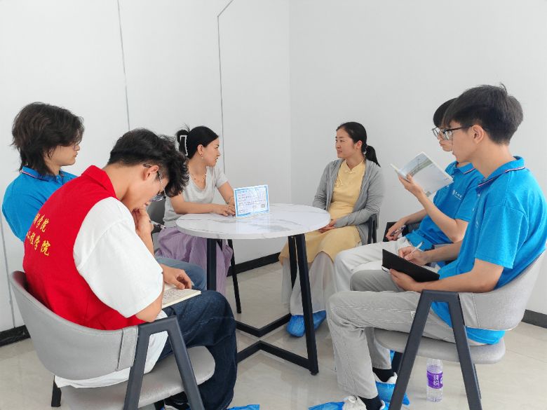 圖為團隊成員與企業代表交流青年大學生在基層就業情況。顧連杰 供圖。