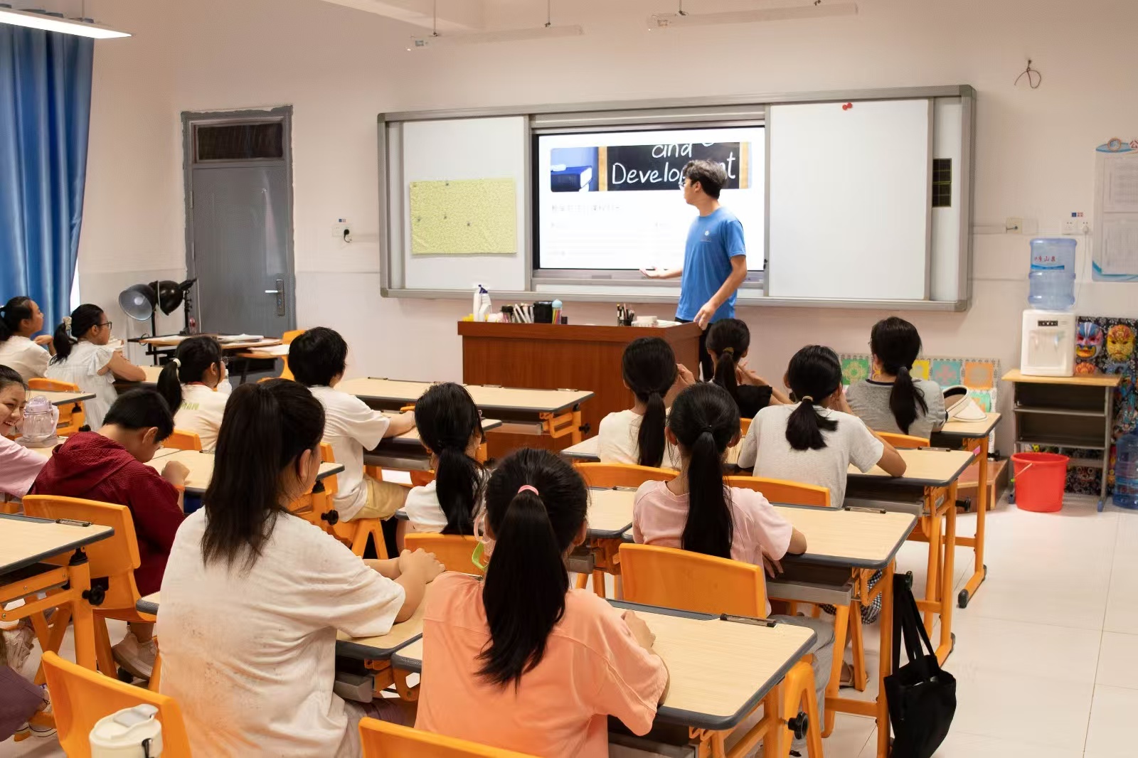 7 月 4 日,支教課程精彩延續,開啟孩子們新的成長之旅。小小主持人課堂,授課老師化身“夢想導師”,圍繞主持片段展開專業培訓。從規范發音,逐字糾正孩子們的讀音;到塑造舞臺儀態,指導站姿、手勢與表情管理。課堂上,孩子們從羞澀緊張,到勇敢登臺展示,一次次練習,讓自信心與臨場發揮能力顯著提升,校園里回蕩著他們愈發清晰、響亮的聲音。