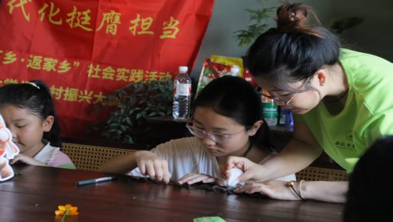 7月7日,實踐團面向留守兒童開設“逐豐自然美育課堂”。孩子們在團隊成員的指導下,用植物標本制作植物相框,學習家鄉植物的特性與價值,將專業知識轉化為生動有趣的科普內容。“這片板栗葉真漂亮!我要把它帶回家送給奶奶。”一位孩子興奮地說道。活動不僅讓孩子們感受到自然的魅力,也讓本土文化在他們心中生根發芽。