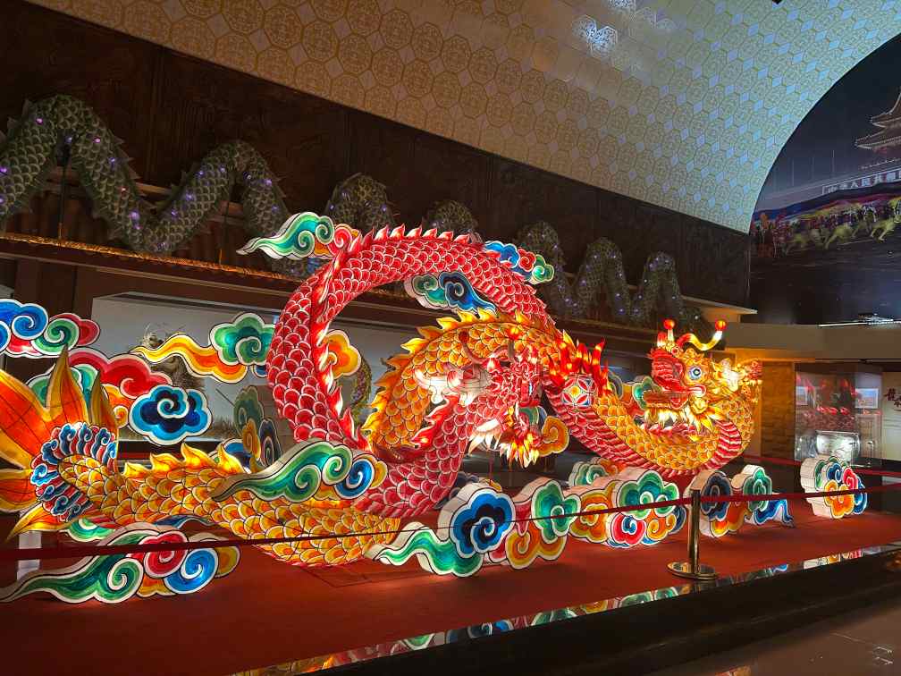 隨后參觀銅梁博物館四樓的銅梁龍燈展廳。荷花龍、稻草龍、火龍等龍燈各具魅力,是中華優秀傳統文化重要組成部分。展廳中央的巨大龍燈十分吸睛,其造型將傳統與現代結合,既保留古樸韻味,又融入現代審美元素,顯得莊重又靈動。燈光亮起時,龍身閃金光,龍頭微擺,龍珠彈懸,引人注目。