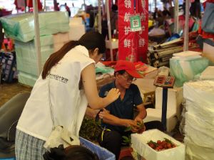 隨后,隊(duì)員們轉(zhuǎn)至當(dāng)?shù)乩笾灰资袌觯[的集市中,清甜的果香彌漫在空氣中。大家與攤主攀談,詳細(xì)記錄荔枝售價(jià)、交易流程等市場動(dòng)態(tài)。鎮(zhèn)隆鎮(zhèn)荔枝協(xié)會會長葉賢亮在受訪時(shí)坦言:“鎮(zhèn)隆荔枝憑借品種優(yōu)勢和技術(shù)積累站穩(wěn)腳跟,但銷售渠道、物流效率和品牌宣傳仍是短板,期待你們能用專業(yè)能力讓更多人知道鎮(zhèn)隆荔枝。”這番話讓隊(duì)員們備受觸動(dòng),也堅(jiān)定了他們通過校地合作模式,以藝術(shù)力量激活農(nóng)產(chǎn)品價(jià)值的決心。