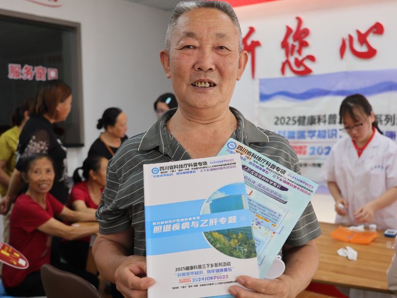▲圖為老年人手持科普宣傳手冊。鐘海欣 供圖