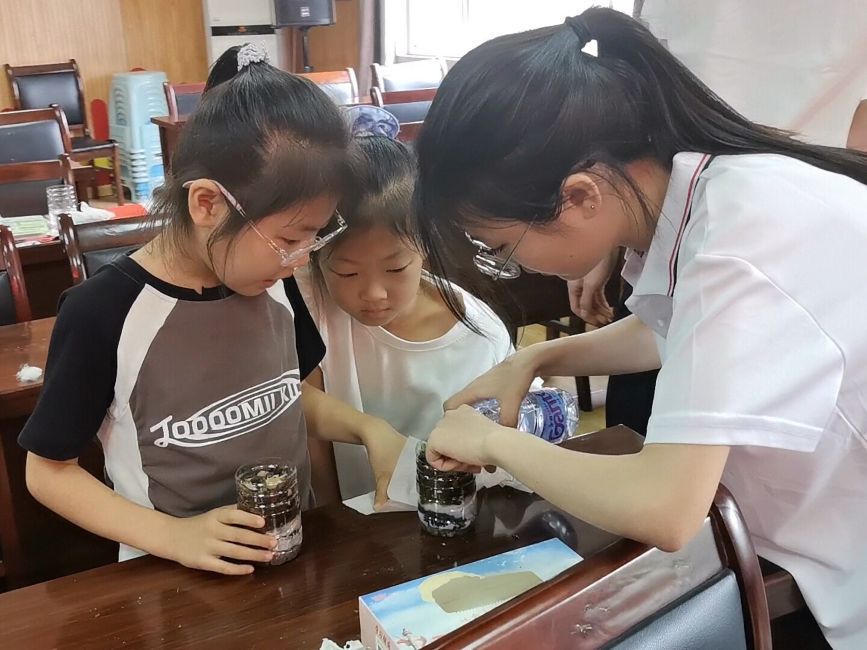 科學技術是第一生產力,亦是啟迪童心的重要載體。活動期間,志愿者結合專業所長,精心設計系列趣味科學實驗,以生動直觀的形式引領孩子們感受科學魅力,激發科學探究興趣。在花朵染色實驗中,志愿者先向孩子們詳細講解實驗步驟與安全規范,待材料準備就緒后,分組指導孩子們動手操作。