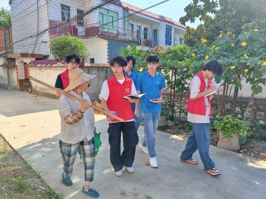 圖為實踐團成員調研當地村民對大學生基層就業工作的認識和了解情況。梁章浩 供圖
