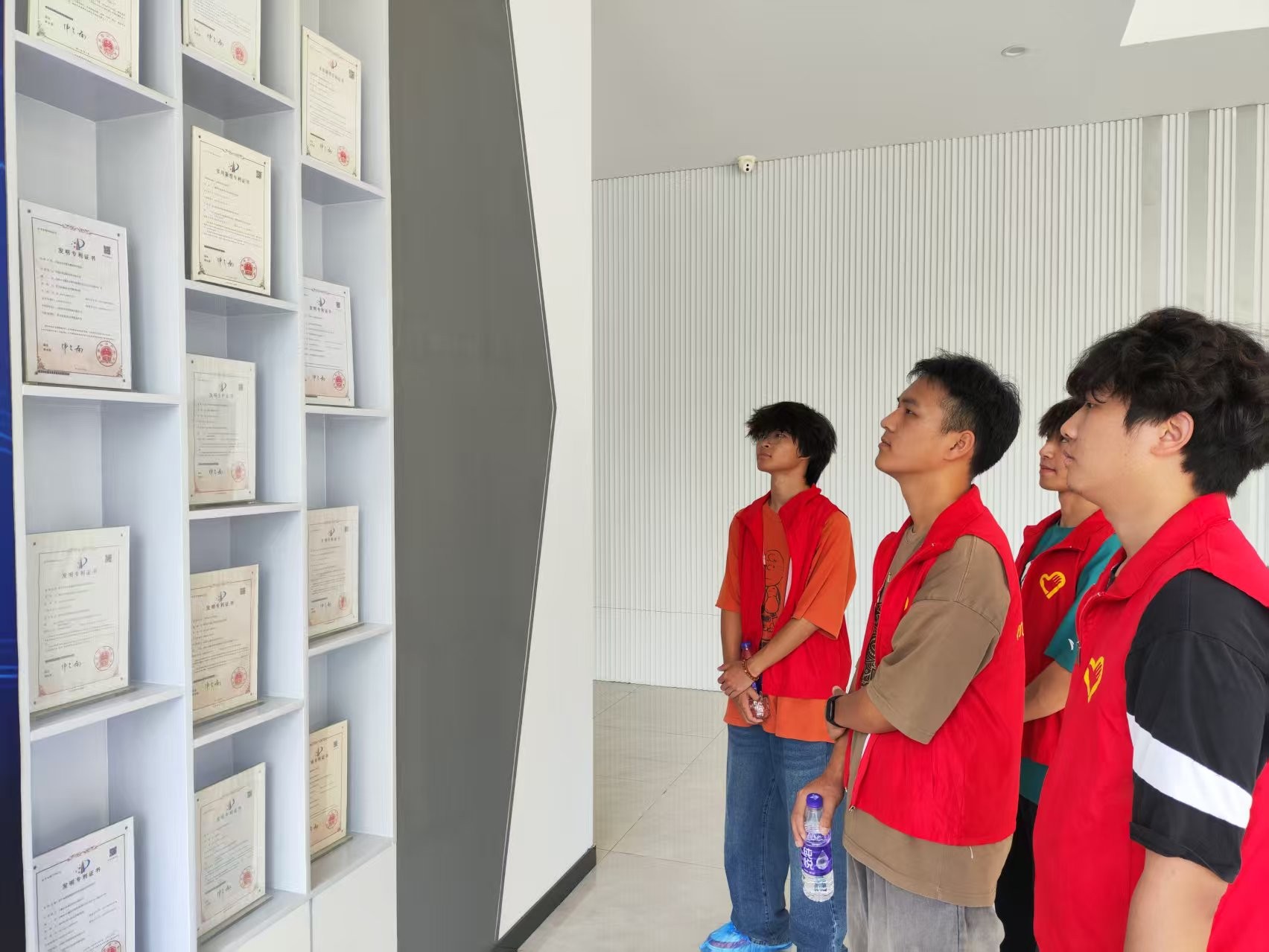 圖為團隊成員參觀合肥比洋通信科技有限公司發明專利成果展。梁章浩 供圖。