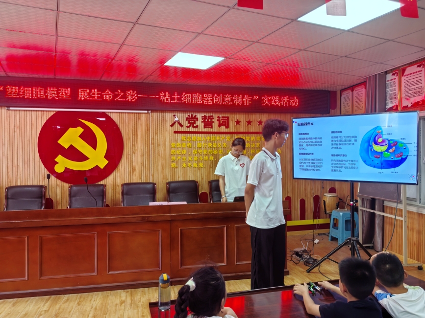 在活動現場,志愿者們首先組織孩子們開展細胞器粘土制作活動。志愿者們詳細講解了細胞的結構和細胞器的功能,并示范如何用粘土制作出逼真的細胞器模型。