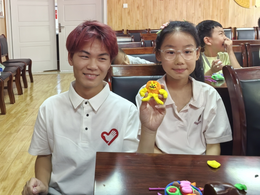 小朋友十分活潑,在細胞器制作完成后甚至還用黏土做了各式的東西作為禮物送給給志愿者。原本嚴肅嚴謹的細胞器模型在這些充滿童趣的禮物映襯下,仿佛也染上了活潑的色彩,整個教室都飄著黏土的清香和孩子們銀鈴般的笑聲。
