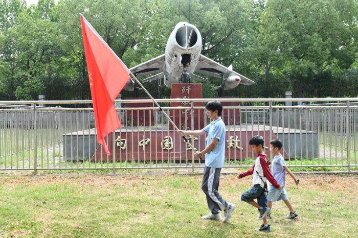 活動首站來到工程認知博物館戶外展區(國防園)。在實踐團成員的講解下,少先隊員們近距離觀摩了59式坦克、殲教六超音速飛機、54式122毫米榴彈炮等國防裝備。通過沉浸式參觀和互動講解,孩子們不僅了解了現代軍事科技的發展成就,更深刻體會到這些裝備背后蘊含的愛國精神,科技強國的種子在幼小心靈中悄然播下。