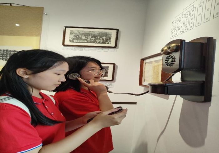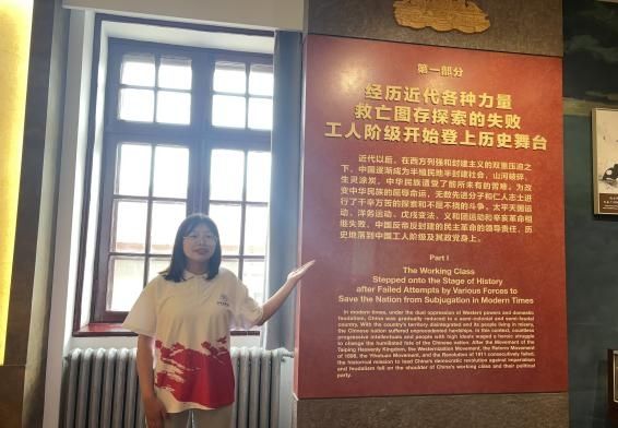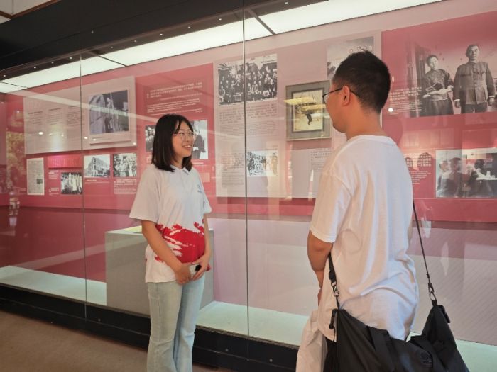 陳列柜中,一件件珍貴文物如同歲月長河中的璀璨星辰:親筆修改的文件稿字斟句酌,透露出對國家大事的殫精竭慮;與國際友人往來的信函情真意切,展現其作為“民間外交家”的卓越風采;樸素的衣物、簡樸的生活用品,無聲訴說著她身居高位卻心系民眾的崇高品格。劉元旭同學向大家介紹:“宋慶齡先生的一生,完美詮釋了‘永遠和黨在一起’的堅定信念和‘為新中國奮斗’的畢生追求。她以非凡的智慧、博大的愛心和女性的堅韌,在革命洪流中勇立潮頭,為新中國的誕生、為婦女兒童事業、為世界和平傾注了全部心血。她的家國情懷和無私奉獻,是跨越時空的精神財富。