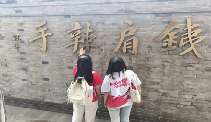 圖8團隊成員于磚墻前感受“鐵肩辣手”精神 呂丹丹攝