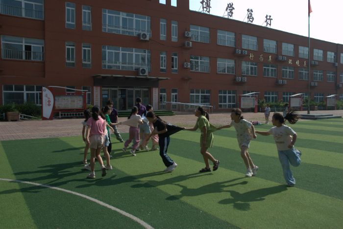 為了貫徹落實以紅色精神鑄魂育人的要求,鍛造青少年強健的體魄,做到在體育鍛煉中磨礪斗爭精神,在集體協作中賡續革命血脈,7月17日,山東理工大學愛之傳承暑期社會實踐團在德州市武城縣四女寺鎮明德小學開展紅色主題體育課。