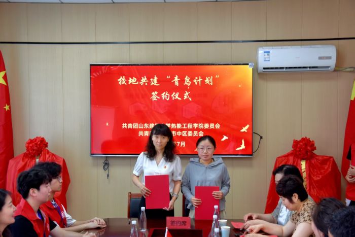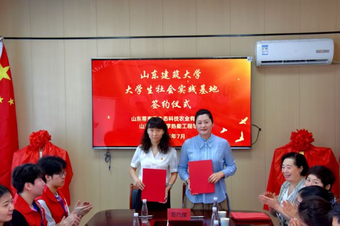 熱實踐 | 校地、校企攜手共促發展——山東建筑大學熱能工程學院與棗莊市市中區共建大學生社會實踐基地為全面貫徹習近平新時代中國特色社會主義思想,切實履行引領凝聚青年、組織動員青年、聯系服務青年的職責,引導大學生自覺走與實踐相結合的成才之路,推動社會實踐深入開展,7月11日,山東建筑大學熱能工程學院在棗莊市孟莊鎮大郭莊村舉行山東建筑大學校地、校企合作簽約揭牌儀式。棗莊市市中區團委書記高敬娜、副書記石麗,孟莊鎮黨委副書記、政協委員、聯絡室主任渠冠楠,副鎮長孫婧,社會事務管理辦公室副主任宋翠,大郭莊村書記紀麗,山東蒂夷茗生態科技農業有限公司總經理陳菲,山東建筑大學熱能工程學院黨委副書記蔣煒瑋、團委書記吳高璇及熱能工程學院“鄉村振興,'棗'有所成”社會實踐團隊成員參加此次簽約儀式,儀式由孫婧主持。