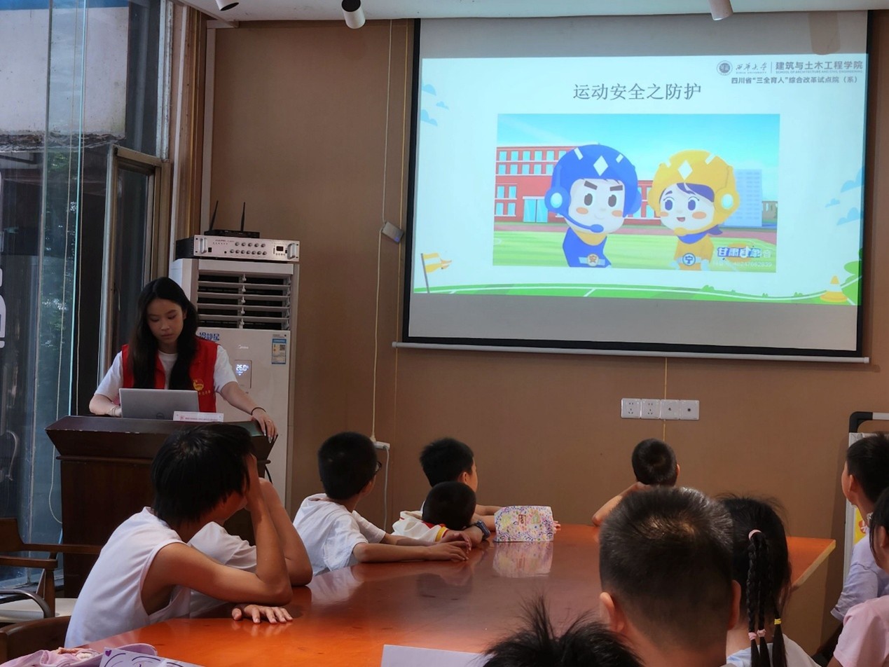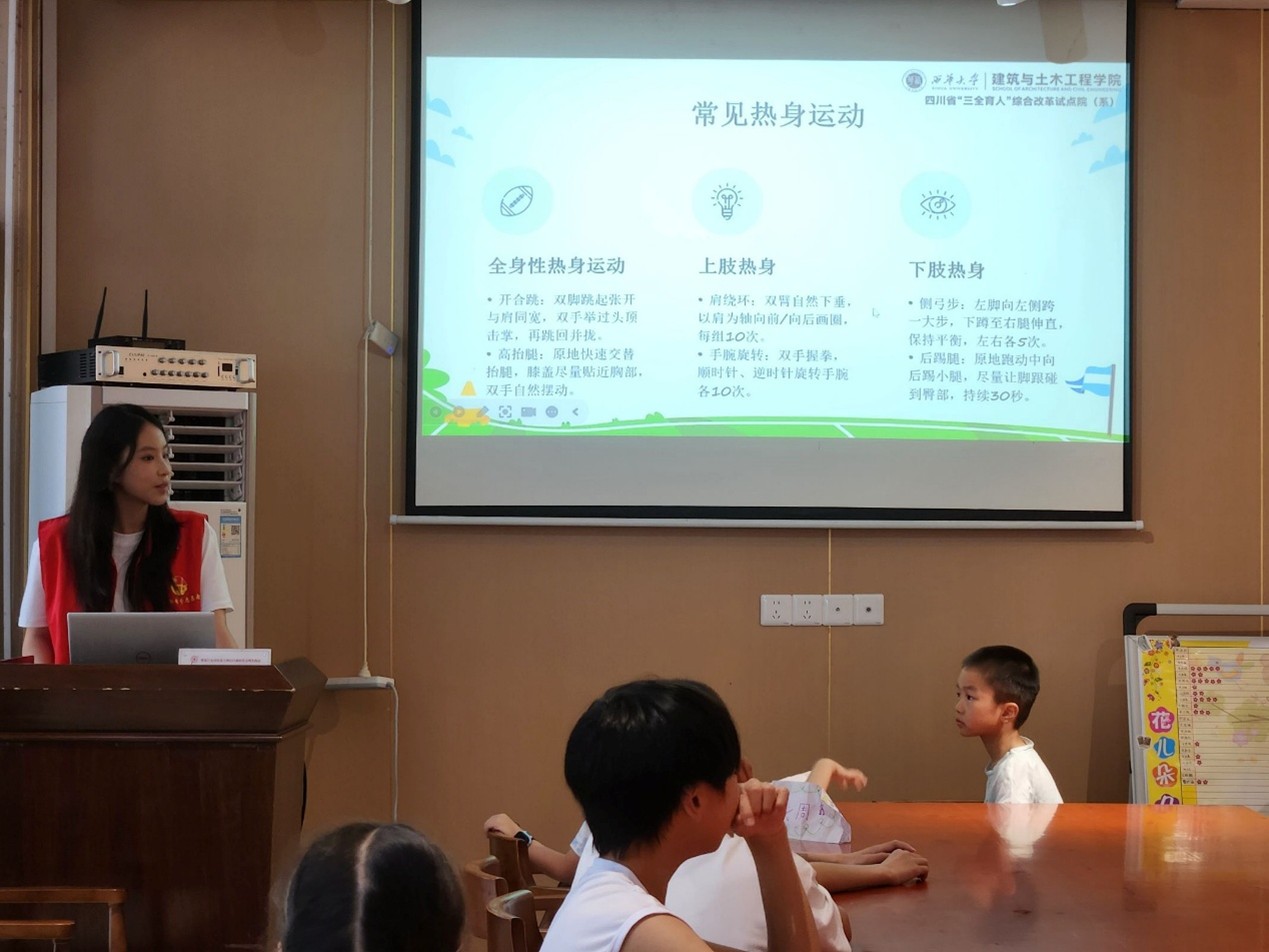 為積極響應四川省“三全育人”綜合改革試點院(系)的號召,增強青少年運動安全意識,培養良好運動習慣,2025年7月9日,西華大學雷鋒青年團——“西”望“方”興社會實踐隊走進成都市郫都區安靖街道方碑社區,為小朋友們帶來一堂生動有趣的“運動常識與安全小課堂”。本次活動以“安全運動,快樂成長”為主題,由主講人韓欣玥負責授課。