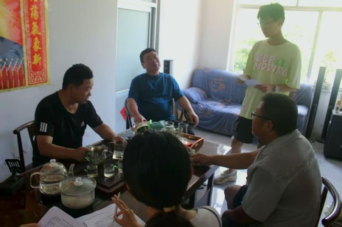 圖為社會實踐隊員與當地的茶廠負責人訪談。 袁成鑫 供圖