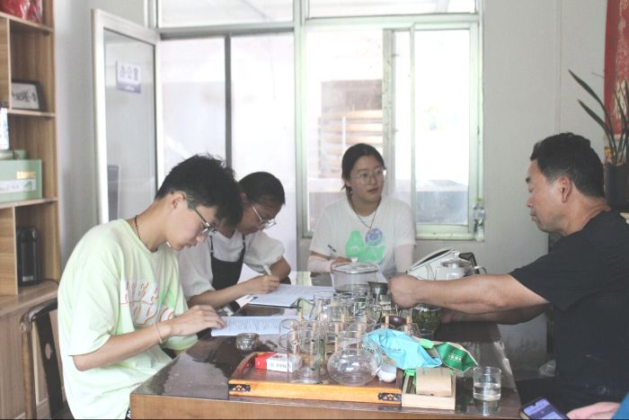 圖為實(shí)踐隊(duì)員在合作社內(nèi)評(píng)估夏茶品相、顏色,氣味等。王晶 供圖