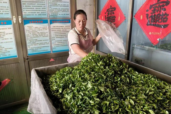 圖為春萍茶廠工作人員正在處理剛采摘的夏茶。王晶 供圖