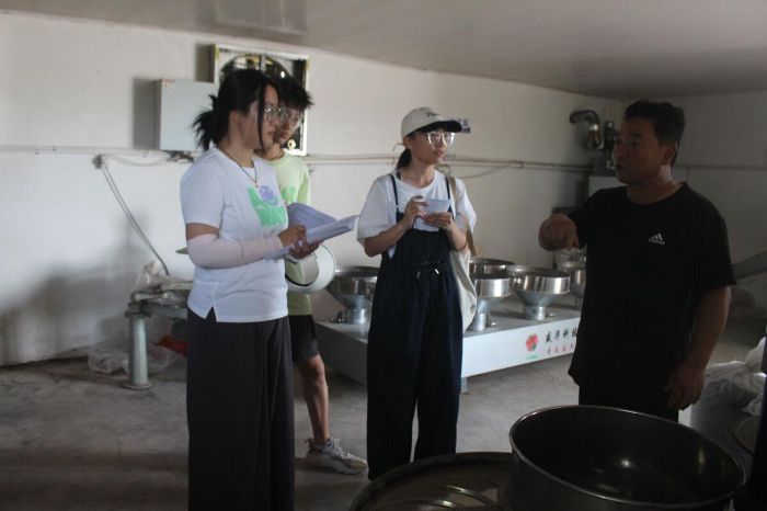 圖為實(shí)踐隊(duì)員采訪春萍茶廠工作人員,了解夏季鮮茶的市場(chǎng)狀況。王晶 供圖