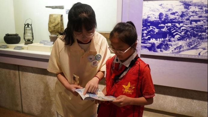 圖為紅領巾講解員為實踐團成員講解紅八軍英雄事跡(通訊員韋文靜攝)