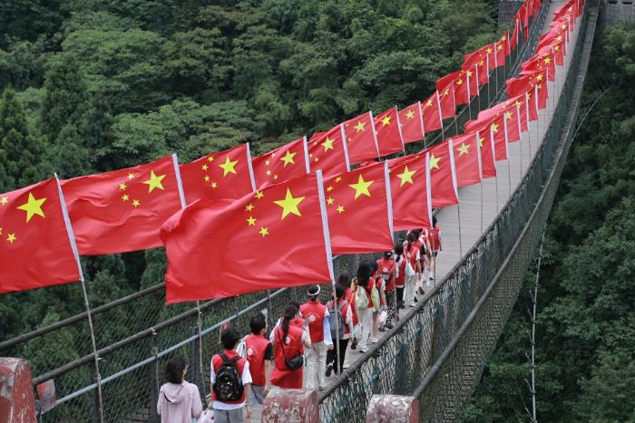 圖2為筑夢團(tuán)橫跨長空橋合影 蔣祺 攝