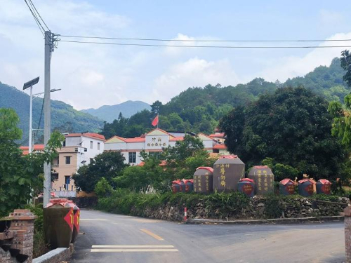 酒香文化村:傳統工藝的現代轉化與產業活力 轉戰官圩鎮沖源村(酒香文化村),實踐團被濃郁的產業氛圍所包圍。群山環抱的村落,橙黃民居整齊排列,家家戶戶門前的陶壇封存著新釀希望,墻上的“把酒話桑麻”“醉里乾坤大”等酒詩墨跡,勾勒出一幅獨特的產業文化圖景。