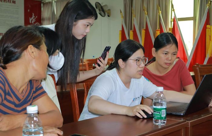 現(xiàn)場答疑環(huán)節(jié)成為了最受村民歡迎的部分。一位阿姨主動提問,她表示自己已經(jīng)開通了商品櫥窗,卻始終不知道如何添加商品鏈接。主講人當(dāng)即走到阿姨身邊,通過她的手機進行現(xiàn)場演示,一步步指導(dǎo)操作,從選擇商品、填寫信息到最終成功上鏈接,整個過程清晰明了。阿姨在成功操作后,臉上露出了滿意的笑容,連連向隊員們道謝:“這下可算弄明白了,以后就知道如何上鏈接了!”