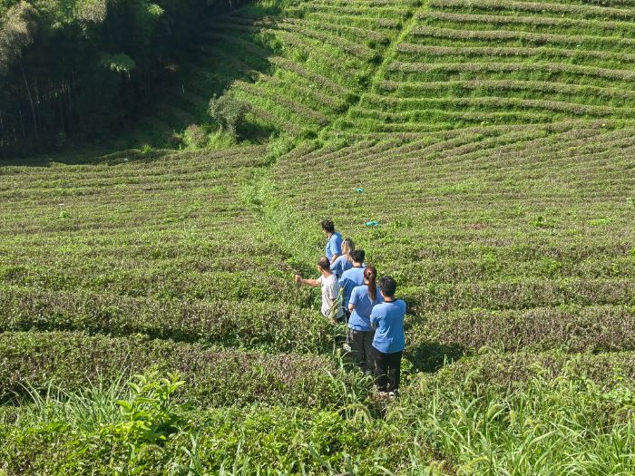 圖為實踐隊實地走進金映茶園梯田。阮曼琳 供圖