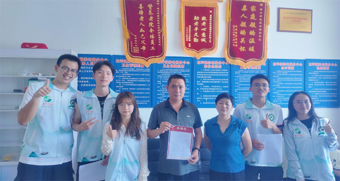 (圖為實踐隊員與養(yǎng)老院汪院長、唐副院長合影)