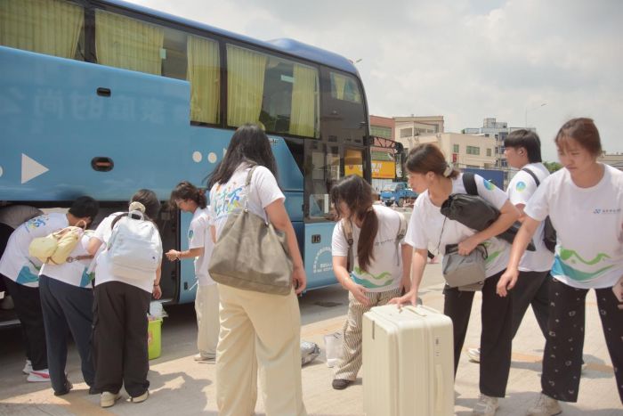 合影結束后,隊員們迅速投入行前準備。隊員們齊心協力,將精心準備的物資有序搬運至大巴車上。一件件沉甸甸的物資,承載著隊員們對投入百千萬工程的熱情和對即將開展實踐活動的熱切期盼。隨著最后一件物資裝車完畢,承載著青春夢想與責任的大巴車整裝待發。
