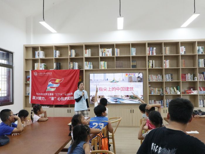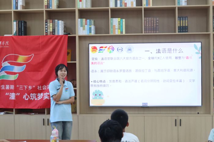 在課堂中,實(shí)踐團(tuán)成員化身文化使者,教孩子們用法語說“你好”、用英語道“謝謝”,并同步展示這些國家的標(biāo)志性建筑圖片。孩子們跟著模仿發(fā)音,指著圖片好奇追問,在歡聲笑語中觸摸世界多元文化。