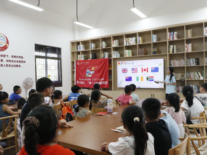 7月14日,“星火接力·‘潼’心筑夢(mèng)”實(shí)踐團(tuán)在走進(jìn)金龍社區(qū)。以支教為載體,發(fā)揮外語專業(yè)優(yōu)勢(shì),為孩子們開啟“聯(lián)合國五常語言”特色課程,用語言繪就多元文化與家國情懷交融的畫卷。