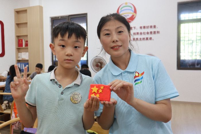 7月12日,雙江社區(qū)活動(dòng)室內(nèi)紅星閃耀、童聲瑯瑯。“星火接力·‘潼’心筑夢(mèng)”實(shí)踐團(tuán)以“國旗映初心,價(jià)值觀啟童智”為主題,通過“手工+互動(dòng)+表達(dá)”的創(chuàng)新形式,為社區(qū)青少年開啟了一場(chǎng)沉浸式愛國主義與價(jià)值觀教育課。