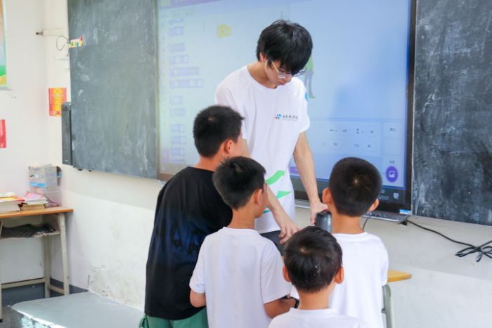考慮到編程知識較為抽象,支教組采用“指令積木化”教學法,將編程指令轉化為“上下左右”等可視化模塊,并設計了“指揮小貓咪回家”的任務。學生們通過拖拽模塊規劃路徑,在不斷試錯的過程中,逐漸理解“順序執行”“條件判斷”等基礎邏輯。