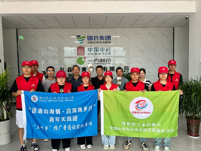 第五章 以語言技能推動鄉村產業發展 結合藥物與化工學院志愿者的專業特長,青年實踐團前往國藥集團下屬的大黃產業園開展了一場“推普+職業技能”的實踐活動。