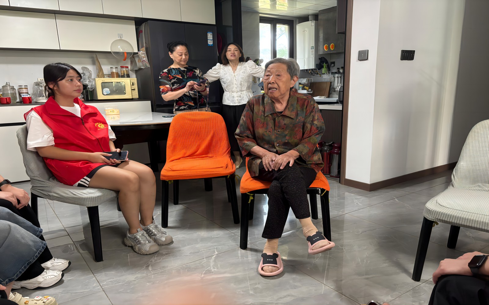 深耕基層,參與適老服務(wù)7月3日上午,實(shí)踐團(tuán)到達(dá)湖濱社區(qū)。在湖濱社區(qū),實(shí)踐團(tuán)成員首先參觀了社區(qū)老人休閑活動(dòng)中心。該中心配有空調(diào)扇、棋牌桌、圖書角,一旁的柜子中整齊擺放著血壓儀、急救包等設(shè)備,社區(qū)工作人員介紹:“這里每天有10余位老人來(lái)活動(dòng),應(yīng)急設(shè)備是為了應(yīng)對(duì)突發(fā)情況,每天都會(huì)有人來(lái)檢查,保障老人安全。”隨后,實(shí)踐團(tuán)成員分組行動(dòng),進(jìn)入樓道,將樓道內(nèi)堆放的舊家具、盆栽等雜物逐一清理,搬運(yùn)至社區(qū)指定收納點(diǎn)。“之前樓道堆得走路都費(fèi)勁,現(xiàn)在敞亮多了!”居民李阿姨笑著對(duì)正在擦拭扶手的實(shí)踐團(tuán)成員們說(shuō)道。