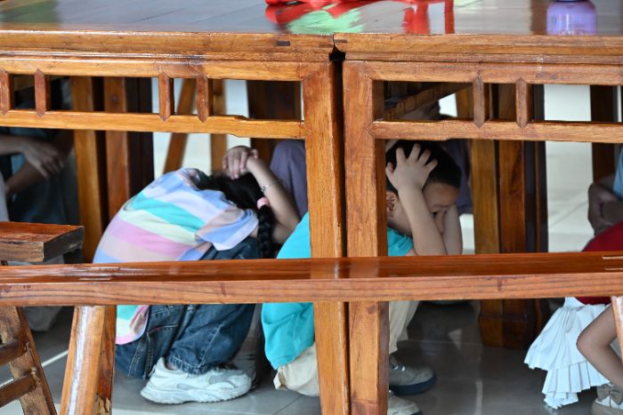 2025年7月22日,為響應(yīng)國家急救知識普及政策,增強青少年暑期安全防護意識,掌握災(zāi)害應(yīng)對及急救技能,河海大學(xué)追光支教實踐團在安徽省縣青山鎮(zhèn)湯店村成功開展了以“危險的事情我不做,守護生命大安全”為主題的應(yīng)急知識普及課程,圍繞防溺水、心肺復(fù)蘇、火災(zāi)及地震疏散等內(nèi)容展開教學(xué)。