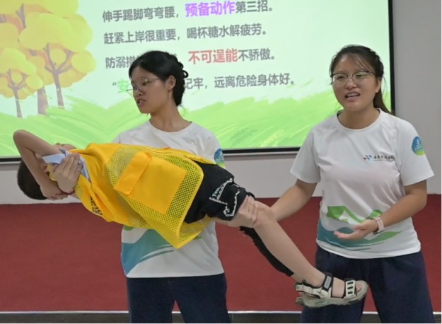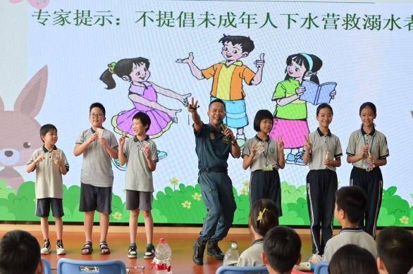 湛藍(lán)防溺課,隊(duì)員們以東莞藍(lán)天救援隊(duì)林弟書(shū)記分享的防溺水典型案例為教學(xué)范本,通過(guò)組織呼救報(bào)警演練、憋氣挑戰(zhàn)、“水母漂”自救實(shí)操等互動(dòng)環(huán)節(jié),讓“見(jiàn)溺智救”的安全意識(shí)深植孩子們心中,成為刻入日常的本能反應(yīng)。