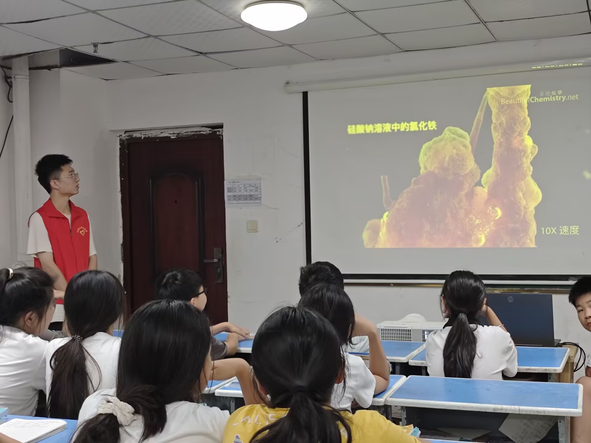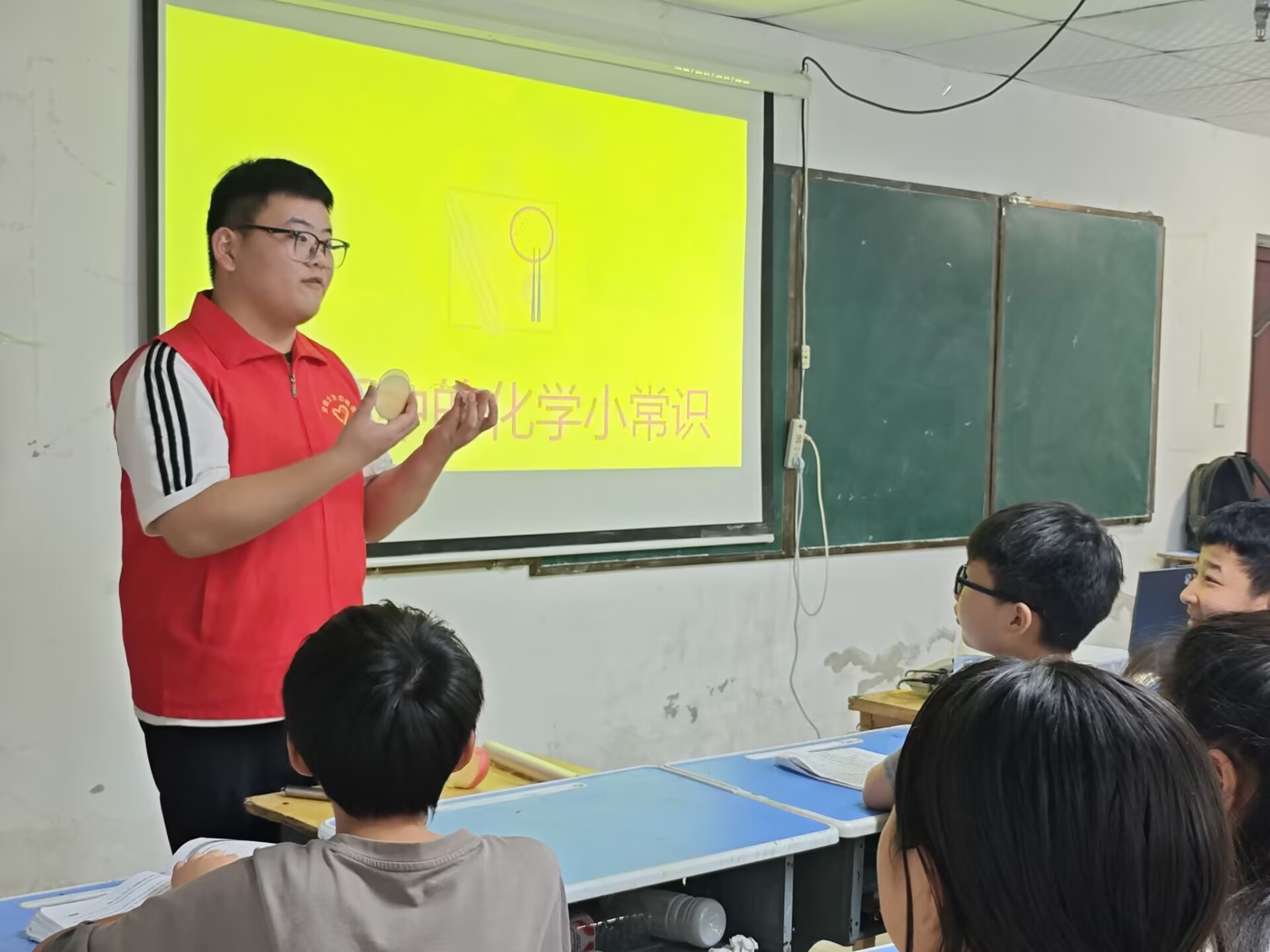 為了豐富小朋友們的暑期生活,拓寬科學視野,同時讓大家了解化學知識在日常生活中的應用,2025年7月31日下午,安徽大學日新社暑期支教隊在阜陽市潁泉區街頭社區開展了一場以“生活中的化學常識”為主題的科普小課堂。安徽大學暑期實踐團成員們化身“科學講解員”,帶著精心籌備的內容與孩子們面對面,解鎖生活中隨處可見的化學奧秘。