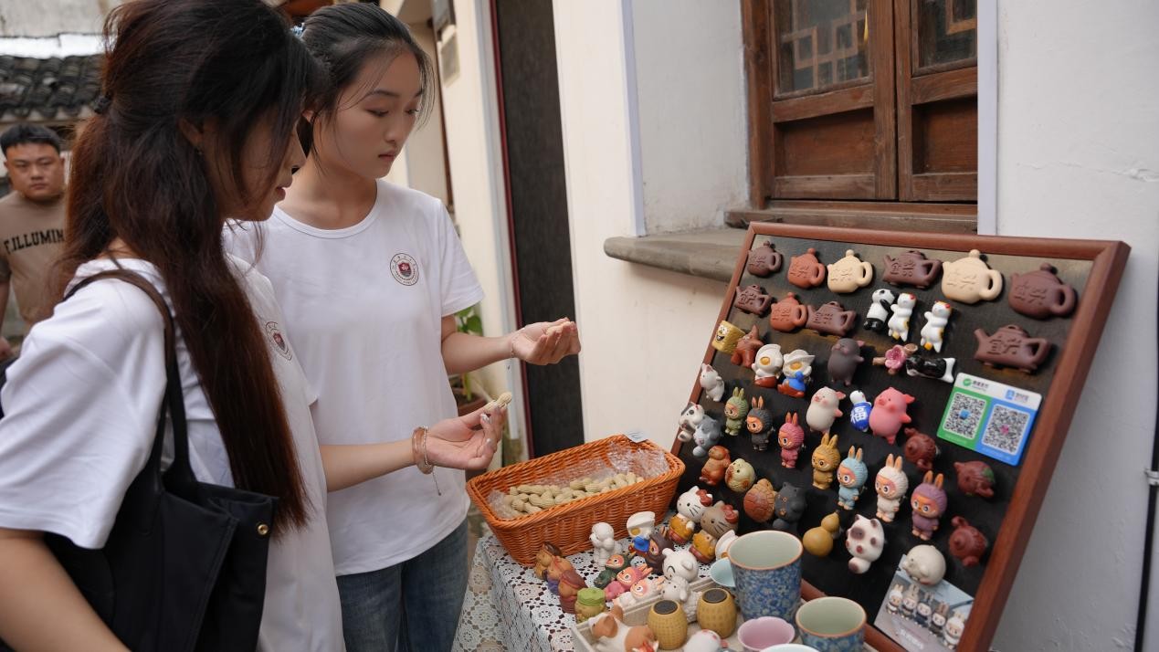 從古老的手工作坊走向現代的街市,實踐團成員來到古南街實地考察。古南街始于宋,因蜀山陶土聚匠人成制陶商街;明清到達黃金時代。實踐團成員走訪了大師故居、手工作坊,還有文創店等新的商業模式。實踐團成員還走訪了1958年成立現在已經從紫砂壺制作工廠轉型為文旅景區的陶二廠。陶二廠既保留舊窯爐講述歷史,也設置了現代化展廳陳列紫砂文創。古老的紫砂文化在新時代也滋養著丁蜀鎮的文化與經濟,迸發強勁創新活力。實踐團在丁蜀鎮建立長效機制,與前墅村、三洞橋村等村落建立長期合作關系。基于調研成果和當地文化資源,實踐團成員們為當地商鋪提供發展和創新意見,比如多與紫砂陶瓷文化IP綁定,在主流短視頻平臺上開設團購等,加大宣傳力度。定期組織學生開展文化調研和實踐活動,持續為鄉村文化建設提供支持。