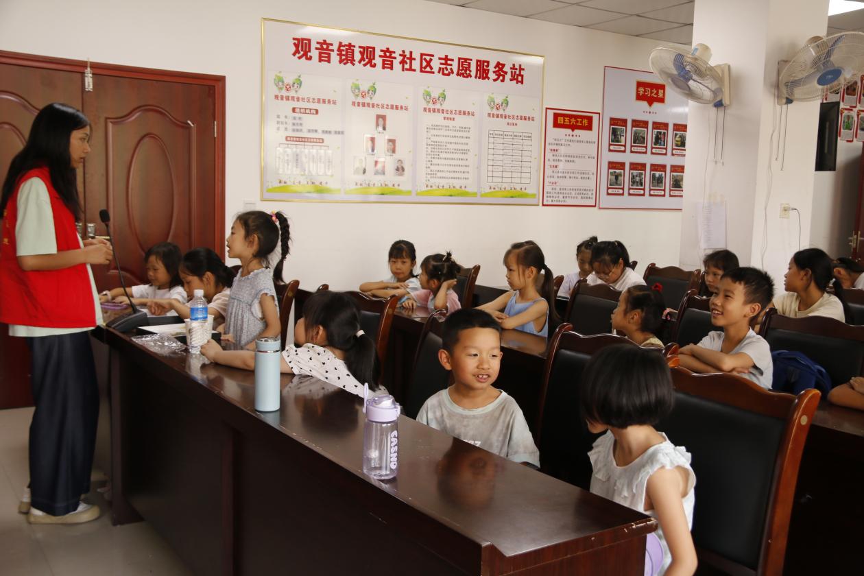 (圖為志愿者為小朋友們講解紅色教育,牟妍嫤供圖)