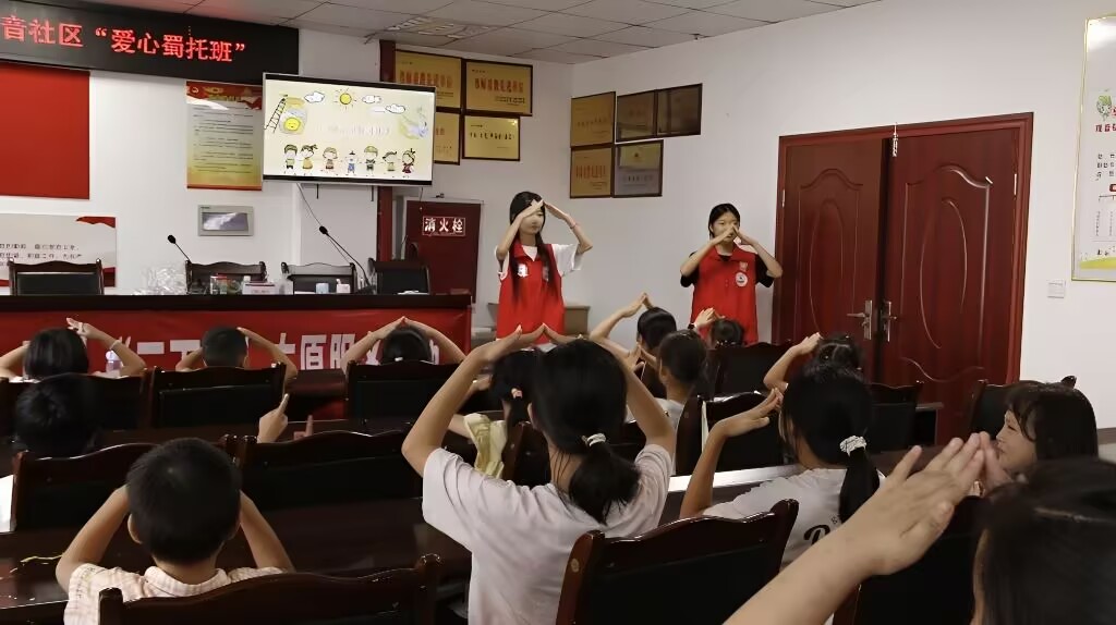 短暫休息后,團隊成員帶領孩子們學習手勢舞蹈。動感的音樂與歡快的節奏讓孩子們迅速投入,他們跟著示范認真模仿每一個動作,雖略顯生澀,那份專注與熱情卻格外動人。活動最后,一場生動的運動講解為當日活動畫上圓滿句號,為孩子們送上滿滿的歡樂。