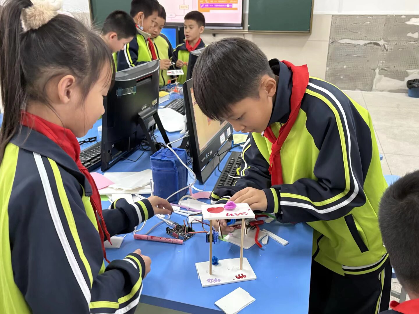 在龍善崇光小學(xué)的課堂上,學(xué)生們對(duì)“智能晴雨感應(yīng)晾衣架”表現(xiàn)出濃厚興趣。他們仔細(xì)連接雨水傳感器與電機(jī)模塊,認(rèn)真討論如何編寫程序才能讓衣架在檢測(cè)到雨水時(shí)自動(dòng)收回。“奶奶經(jīng)常忙著農(nóng)活,下雨時(shí)總來(lái)不及收衣服。有了這個(gè),就算她不在家,衣服也不會(huì)淋濕了。”學(xué)生小琳(化名)一邊調(diào)試著傳感器靈敏度,一邊認(rèn)真地解釋道。