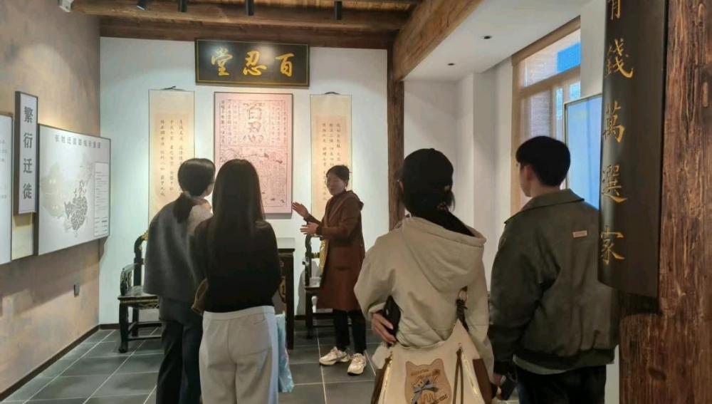實踐隊在百忍堂學習張公藝“九世同堂”的治家事跡